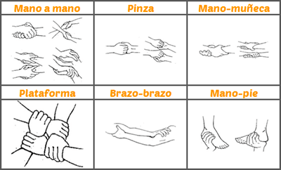 - Posición de las manos. Es importante realizar bien los agarres o presas. A continuación os dejo cuáles son los tipos de agarres más habituales.