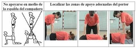 - Posición de los apoyos. Este punto es muy IMPORTANTE. Cuando nos subimos a los portores debemos asegurar muy bien donde nos apoyamos para no hacer daño. Siempre lo haremos sobre los hombros o cadera (nunca en la espalda)